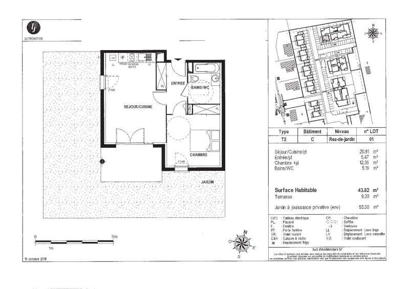 Appartement 2 pièces 43.82m²