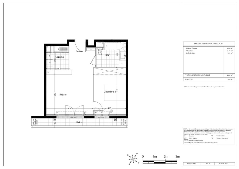 Appartement 2 pièces 42.45m²