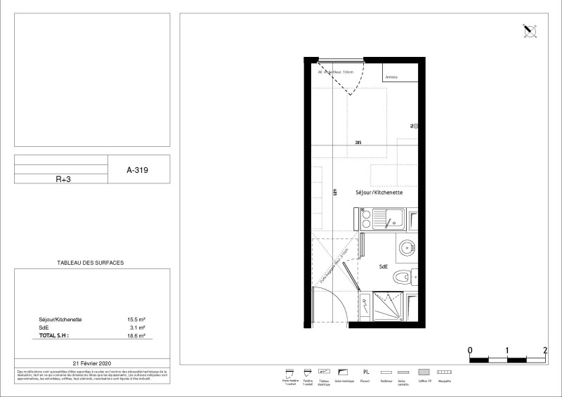Appartement 1 pièce 18.6m²