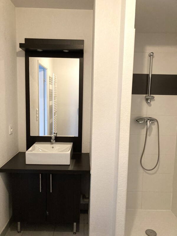 Elle vous propose un appartement T1 composé d'une entrée avec placard aménagé, d'une pièce principale avec cuisine équipée (évier, meubles hauts et bas, plaque vitrocéramique 2 feux, hotte aspirante, réfrigérateur table top), ainsi que d'une salle d'eau aménagée.