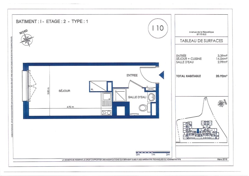 Découvrez ce studio situé au 2ème étage : avec entrée, cuisine équipée (évier inox, plaque 2 feux, hotte, réfrigérateur table top, meubles hauts et bas), séjour, salle d'eau aménagée avec WC, placards aménagés, parking aérien et système de vidéophone.