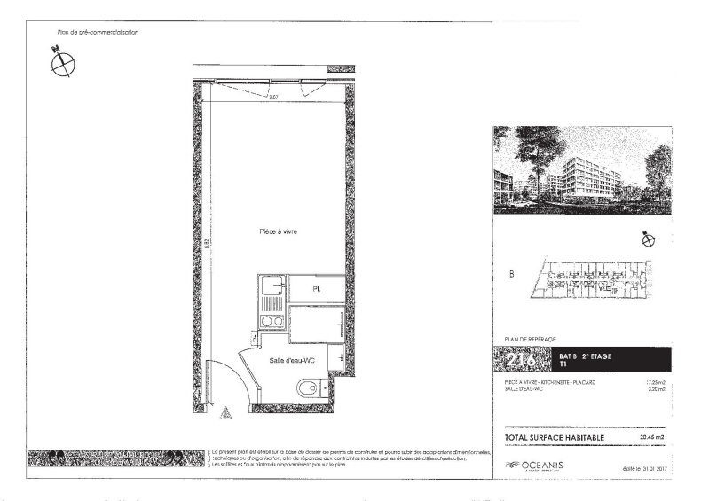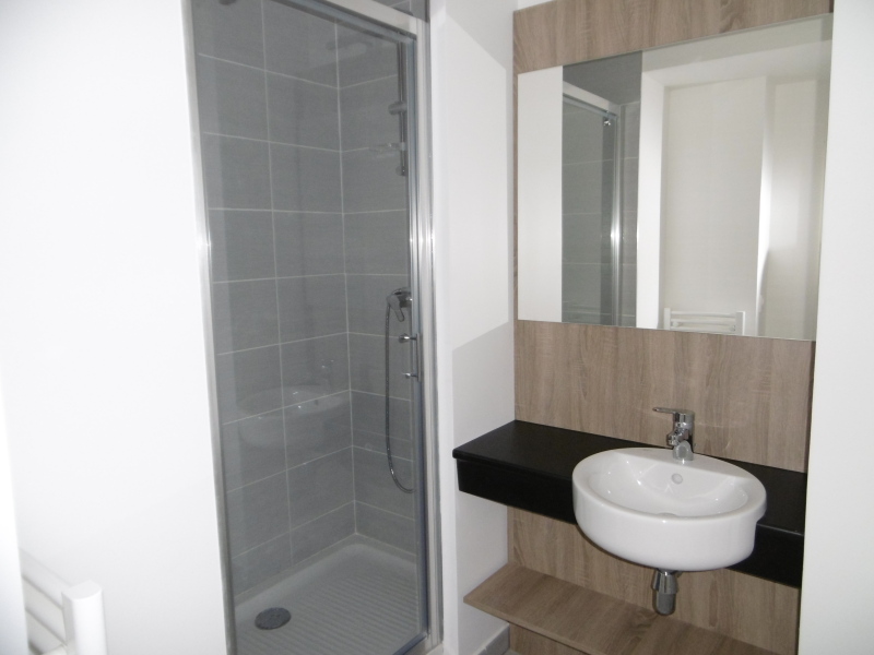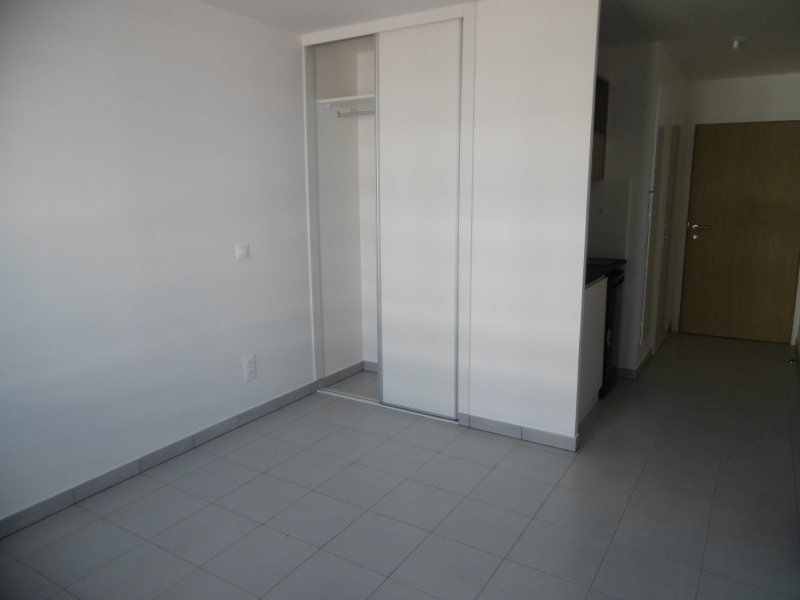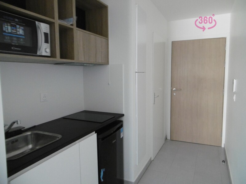 Nous vous proposons ce T1 composé d'un séjour avec cuisine équipée (évier inox, plaque 2 feux, hotte, meubles hauts et bas, frigo top, micro-ondes), salle d'eau aménagée avec WC.