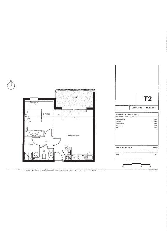 Appartement 2 pièces 44m²