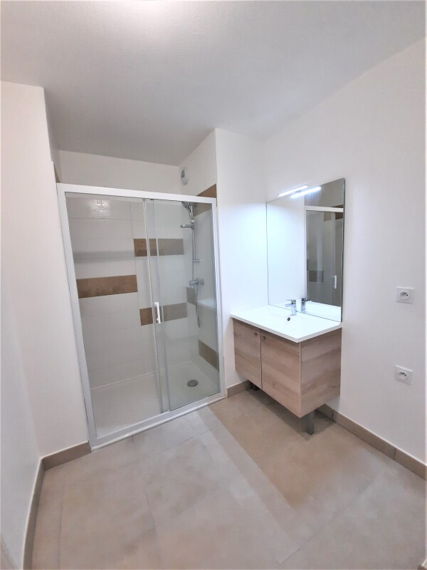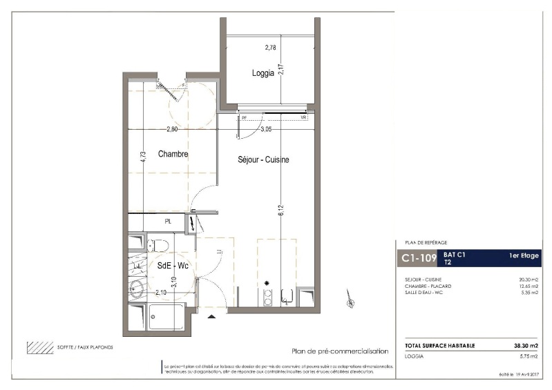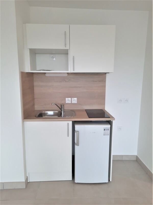 Il est composé d'une entrée, d'un séjour avec cuisine équipée (évier inox, plaque 2 feux, hotte, meubles hauts et bas, frigo top), d'une chambre avec placard, d'une salle d'eau aménagée avec WC, d'une loggia de 5.75m². Il bénéficie d'un parking sous-sol.