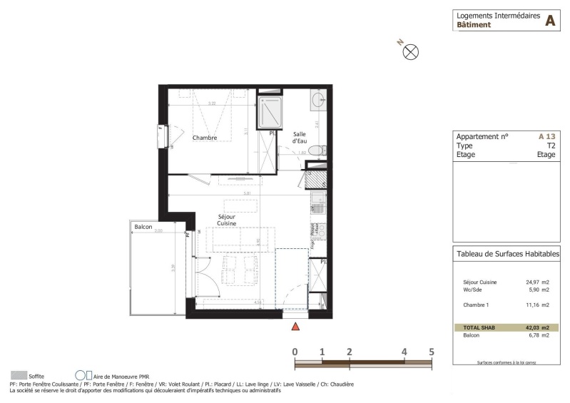 Nous vous proposons un agréable T2 composé d'un séjour avec cuisine équipée (évier, plaque 2 feux, hotte, meubles hauts et bas, frigo top), d'une chambre avec placard, d'une salle d'eau aménagée avec WC, d'un balcon de 6.78m².
