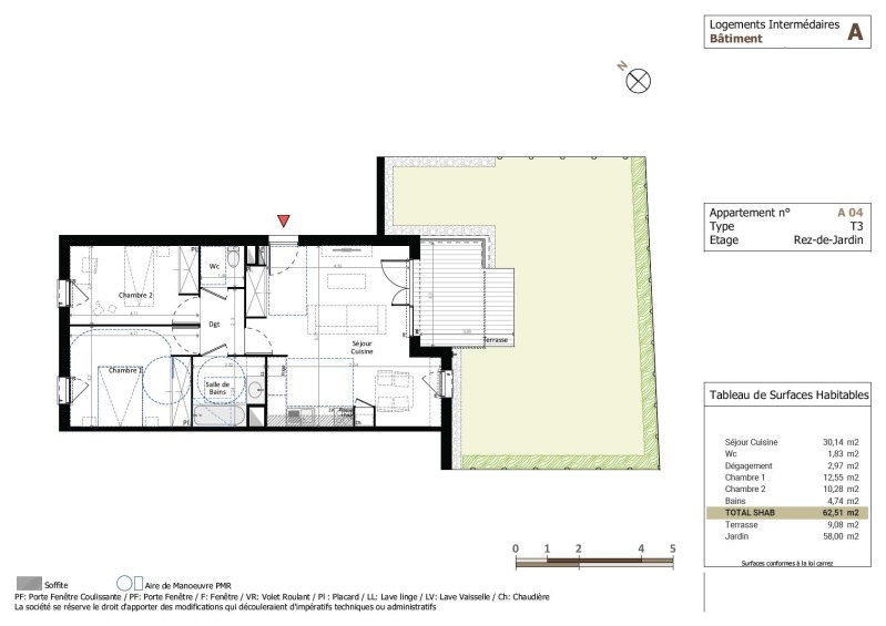 A LOUER T3 DE 62M² AVEC JARDIN DE 58M²