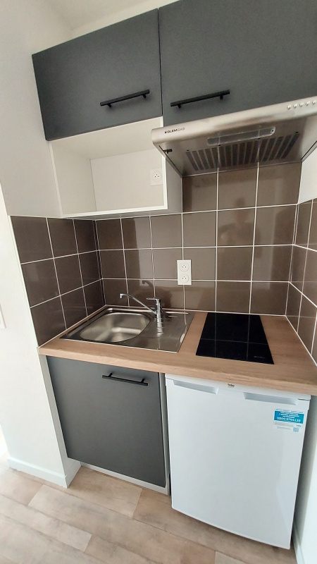 Nous vous proposons un agréable Studio composé d'une entrée, d'une pièce à vivre avec cuisine aménagée (évier inox, plaque 2 feux, hotte, meubles hauts et bas, réfrigérateur table top), d'une salle d'eau aménagée avec WC . Il bénéficie d'un parking sous-sol.