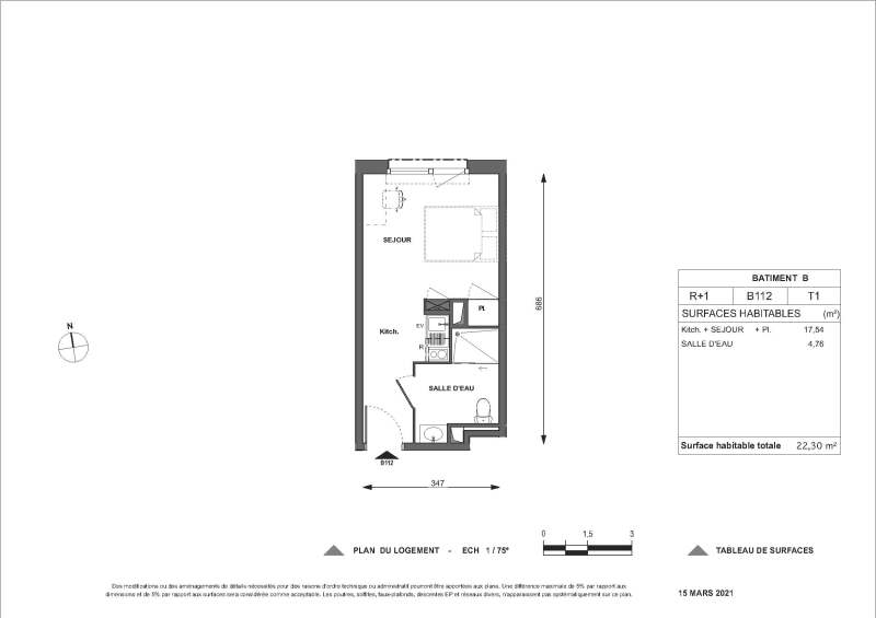 Nous vous proposons un agréable Studio situé au 1er étage composé d'une entrée, d'une pièce à vivre avec cuisine aménagée (évier inox, plaque 2 feux, hotte, meubles hauts et bas, réfrigérateur table top), d'une salle d'eau aménagée avec WC . Il bénéficie d'un parking sous-sol.