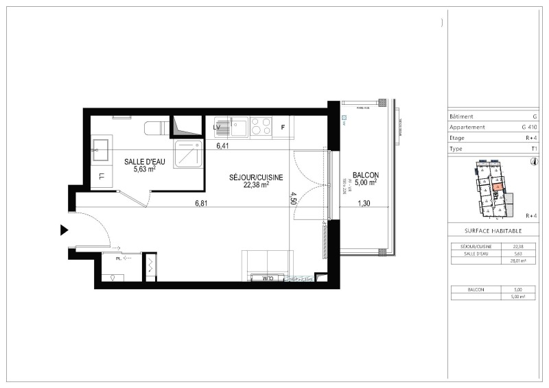 Nous vous proposons ce bel appartement T1 neuf, situé au 2ème étage de la résidence.