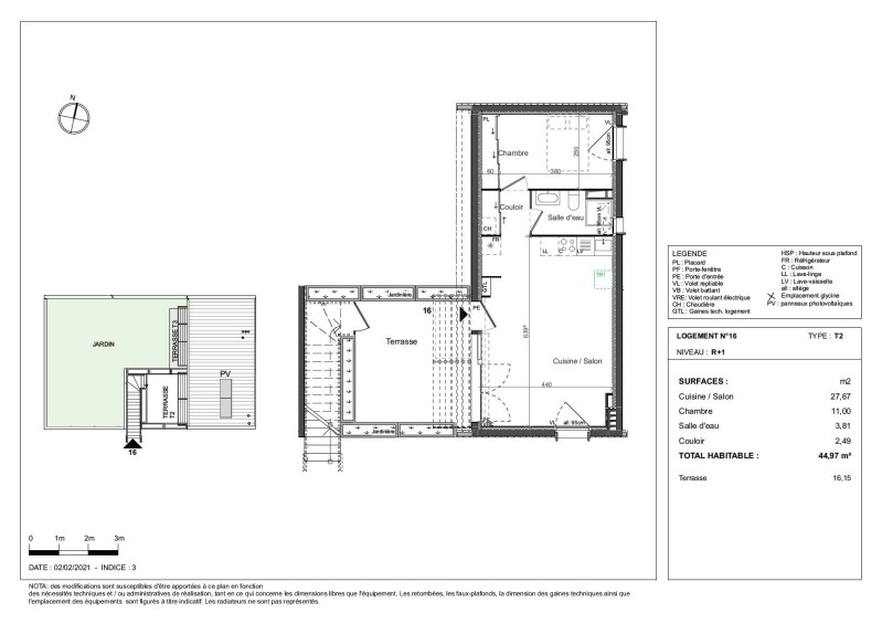 Appartement 2 pièces 44.97m²