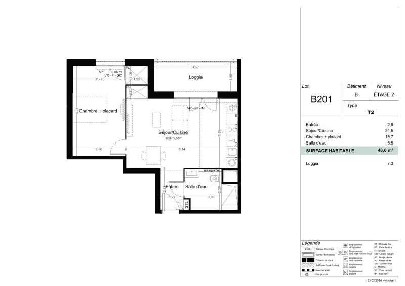 Un séjour lumineux avec cuisine équipée, ouvert sur une agréable loggia de 7,3 m²