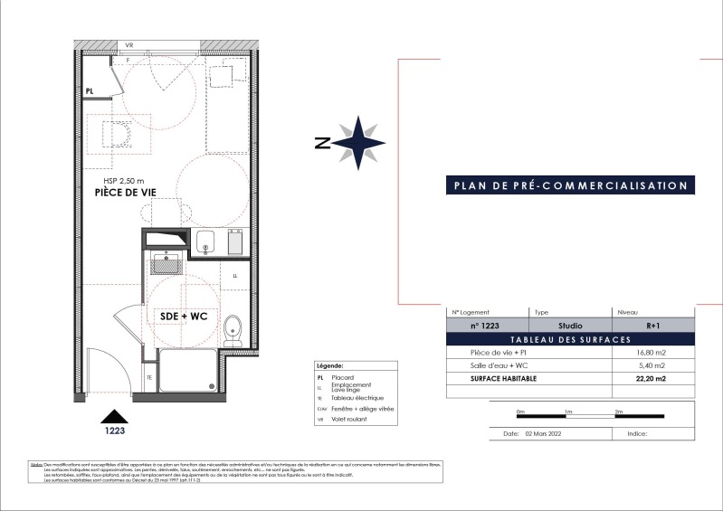 Le studio de 22.20m² offre une pièce de vie fonctionnelle avec une cuisine équipée, un réfrigérateur table top et des rangements pratiques. La salle d'eau moderne avec WC vous garantit un confort simple et efficace au quotidien. Une place de parking extérieure vient compléter ce bien.