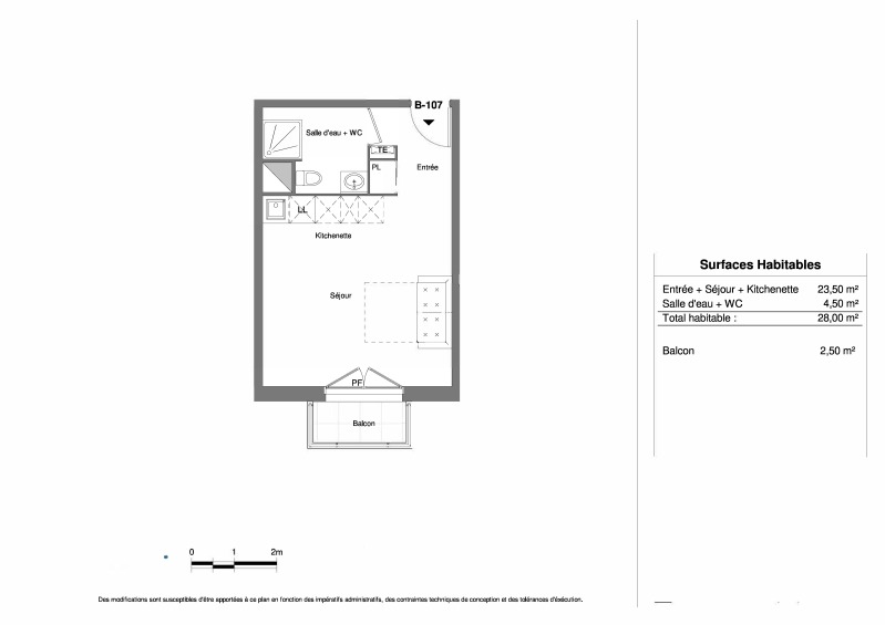 L'appartement se compose d'une entrée, d'un séjour lumineux avec cuisine équipée, ouvert sur un agréable balcon de 2,50 m², ainsi que d'une salle d'eau aménagée avec WC.