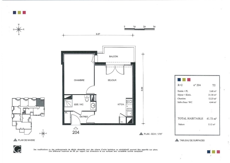 Il se compose d'une entrée avec placard, d'une cuisine équipée (meubles hauts et bas, plaque vitro céramique 2 feux, hotte aspirante, frigo table top) ouverte sur le séjour avec accès ur le balcon de 5.12m², d'une grande chambre et d'une salle d'eau aménagée avec wc.