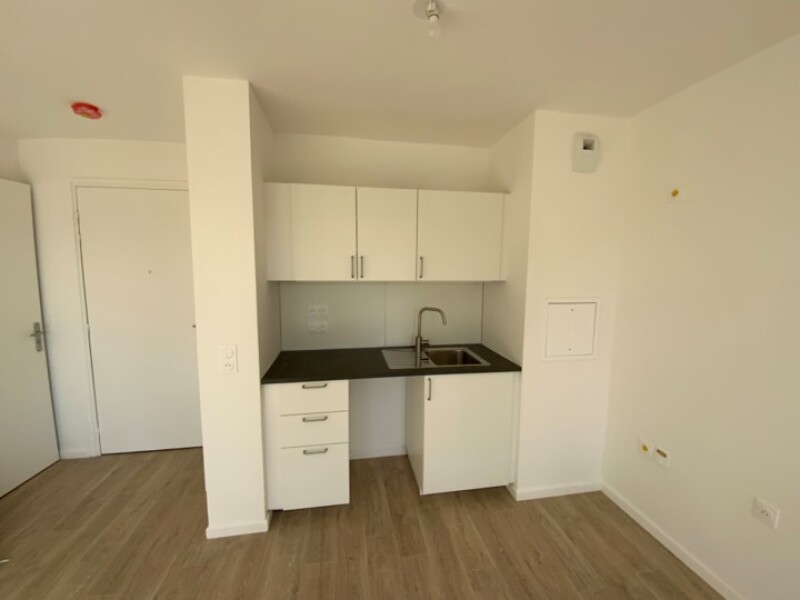 Le logement se compose d'un séjour agréable avec cuisine aménagée (meubles hauts et bas, évier), offrant un espace de vie pratique et lumineux.