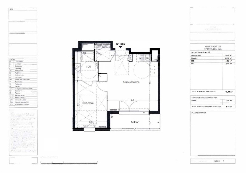 Vous y trouverez également une chambre, une salle d'eau, un WC séparé, ainsi quEURun balcon de 6,33 m², idéal pour profiter de l'extérieur.