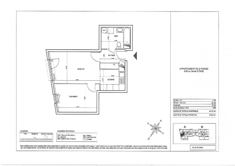 Au sein d'une résidence agréable, nous vous proposons un appartement T2 de 41 m², situé au 3ème étage, comprenant :