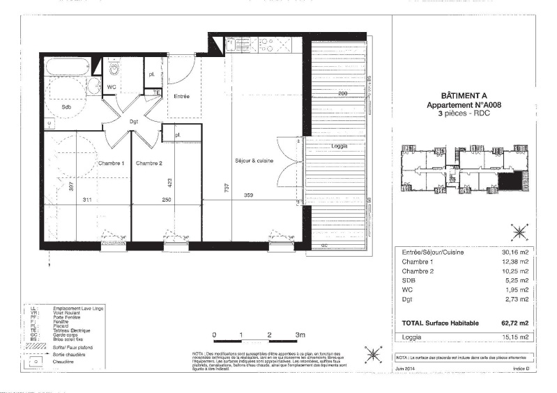 Appartement 3 pièces 62.72m²