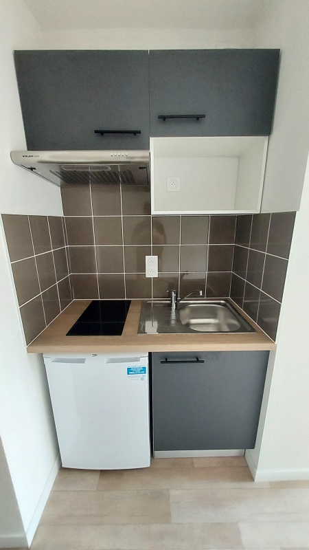 Nous vous proposons un agréable Studio composé d'une entrée, d'une pièce à vivre avec cuisine aménagée (évier inox, plaque 2 feux, hotte, meubles hauts et bas, réfrigérateur table top), d'une salle d'eau aménagée avec WC . Il bénéficie d'un parking sous-sol.
