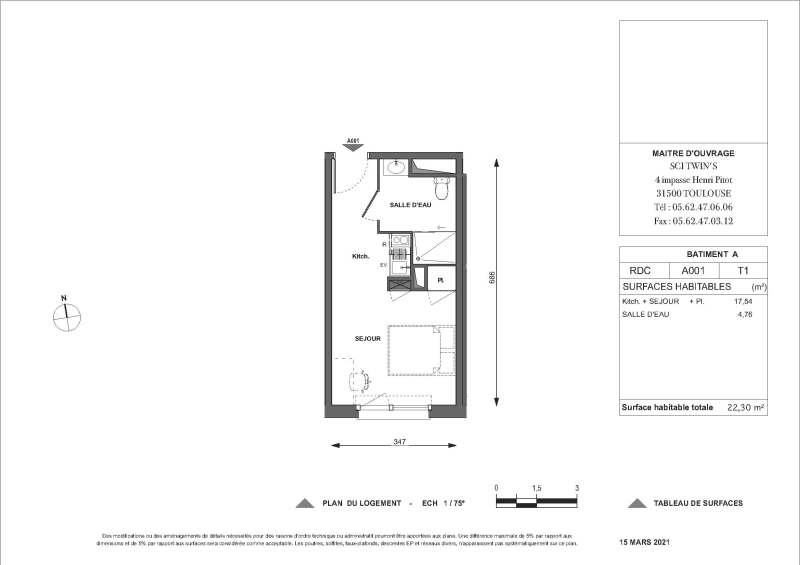 Appartement 1 pièce 22.3m²