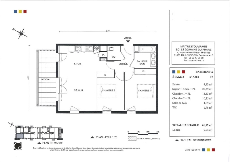 Appartement 3 pièces 61.57m²
