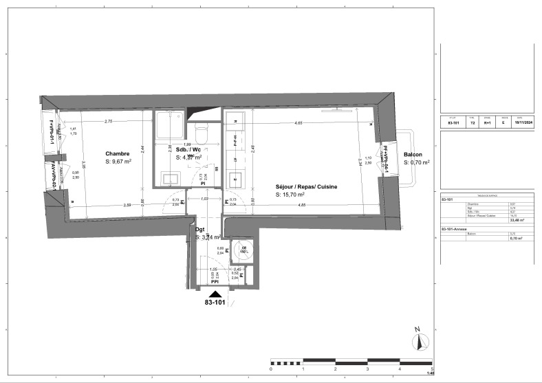 Appartement 2 pièces 33.48m²