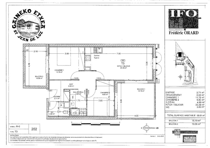 Nous vous proposons ce T3 composé d'une entrée, séjour avec cuisine équipée (évier inox, plaque 4 feux, hotte, meubles hauts et bas), deux chambres, salle d'eau aménagée et WC séparé, deux balcons d'une surface totale de 25.57m² , un parking aérien.