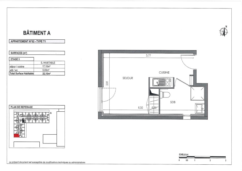 Appartement 1 pièce 22.1m²