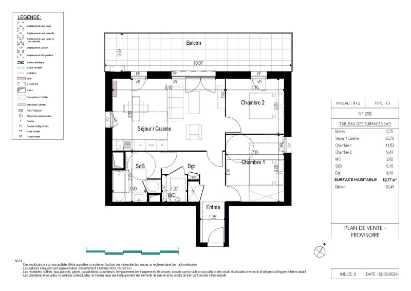 Appartement 3 pièces 62.77m²