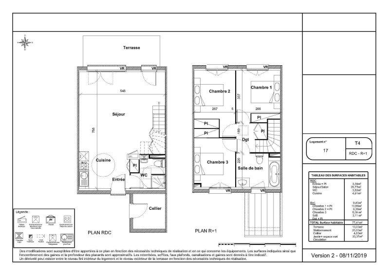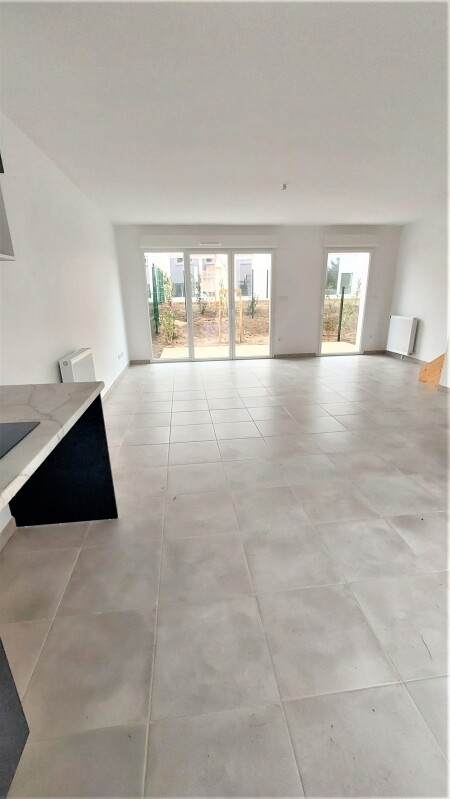 Nous vous proposons une agréable Villa 4 pièces composée au rez de chaussé : d'une entrée, d'un séjour avec cuisine équipée (évier inox, plaque 4 feux, hotte, meubles hauts et bas), d'une salle d'eau avec WC et d'un accès sur une terrasse de 10m² donnant sur un jardin de 33.37m².