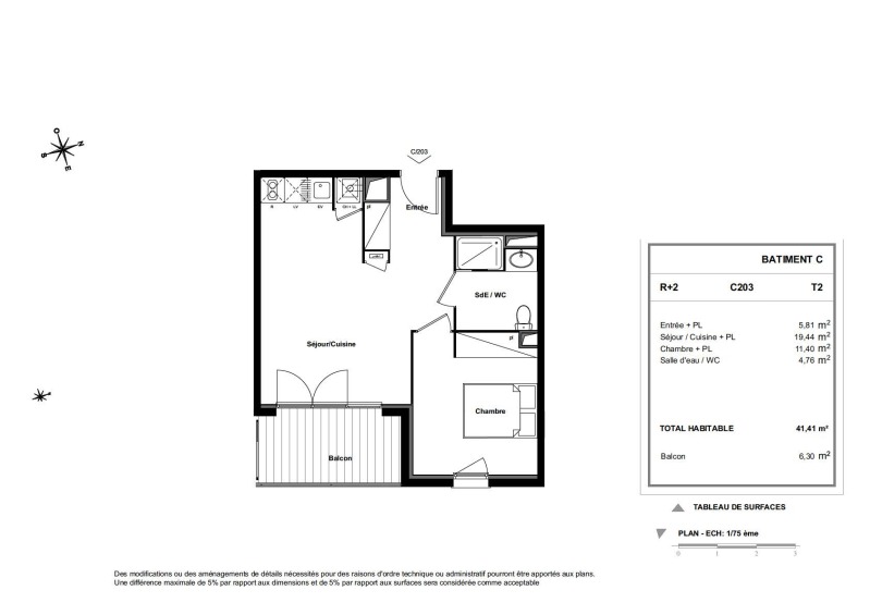 Appartement 2 pièces 41.41m²