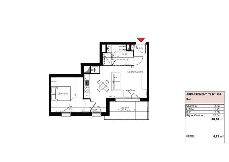 Il se compose d'une entrée, d'un séjour avec cuisine équipée (Meubles hauts et bas, un évier, plaque 4 feux, une hotte), d'une chambre, d'une salle d'eau aménagée avec wc, d'un balcon de 6.73m² . Il bénéficie d'une place de parking en extérieur.