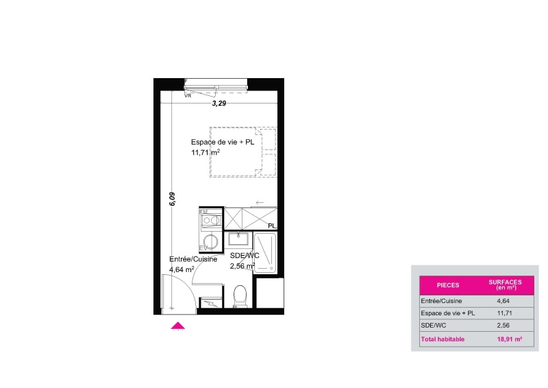 Appartement 1 pièce 18.91m²