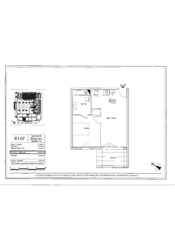 Il se compose d'une entrée avec placard, d'un séjour avec cuisine équipée (évier, plaque 2 feux vitrocéramique, hotte, frigo, meubles hauts et bas) s'ouvrant sur un balcon ,d' une chambre avec placard, d'une salle de bains aménagée avec wc.
