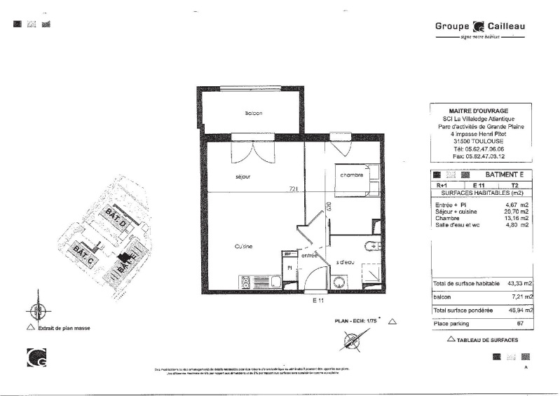 De style contemporaine et labellisée BBC (Bâtiment Basse Consommation), elle propose à la location un appartement T2 composé : entrée avec placards, d'un séjour avec cuisine kitchenette équipée (évier, plaque 2 feux, meubles hauts et bas) s'ouvrant sur un balcon, d'une chambre, d'une salle d'eau aménagée avec wc.
