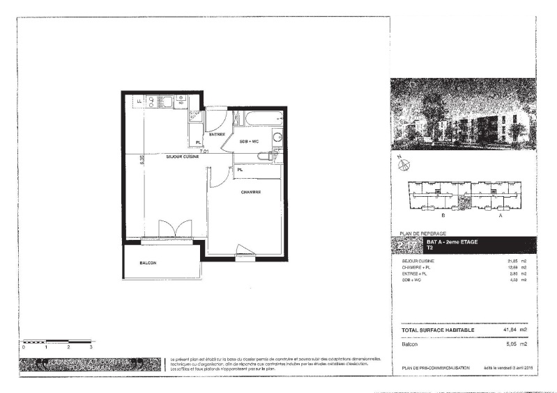 Nous vous proposons un appartement T2 situé au 2ème étage, comprenant :